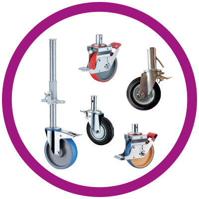 Ruote in gomma nera e nucleo in lamiera per ponteggi | 200RNS3SE | ROTANTE | tubo in acciaio | FEMMINA